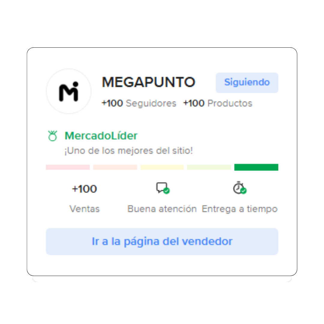 Comprá con total confianza. Nuestra tienda cuenta con la garantía de Mercado Libre y la distinción MercadoLíder, lo que respalda cada compra con entregas a tiempo y atención comprobada. En Megapunto tu compra está protegida y acompañada de principio a fin.