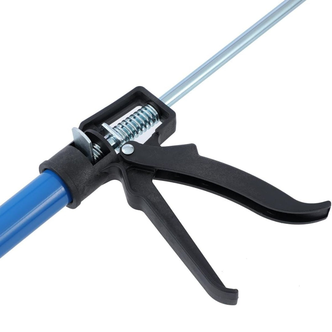 Cuenta con un sistema de presión con gatillo que permite ajustar la altura de forma rápida y segura. Su barra telescópica se adapta a diferentes espacios de trabajo y las bases antideslizantes en ambos extremos aseguran una sujeción firme sin dañar las superficies. Su estructura es resistente y a la vez ligera, lo que facilita su manipulación durante la instalación de distintos materiales.