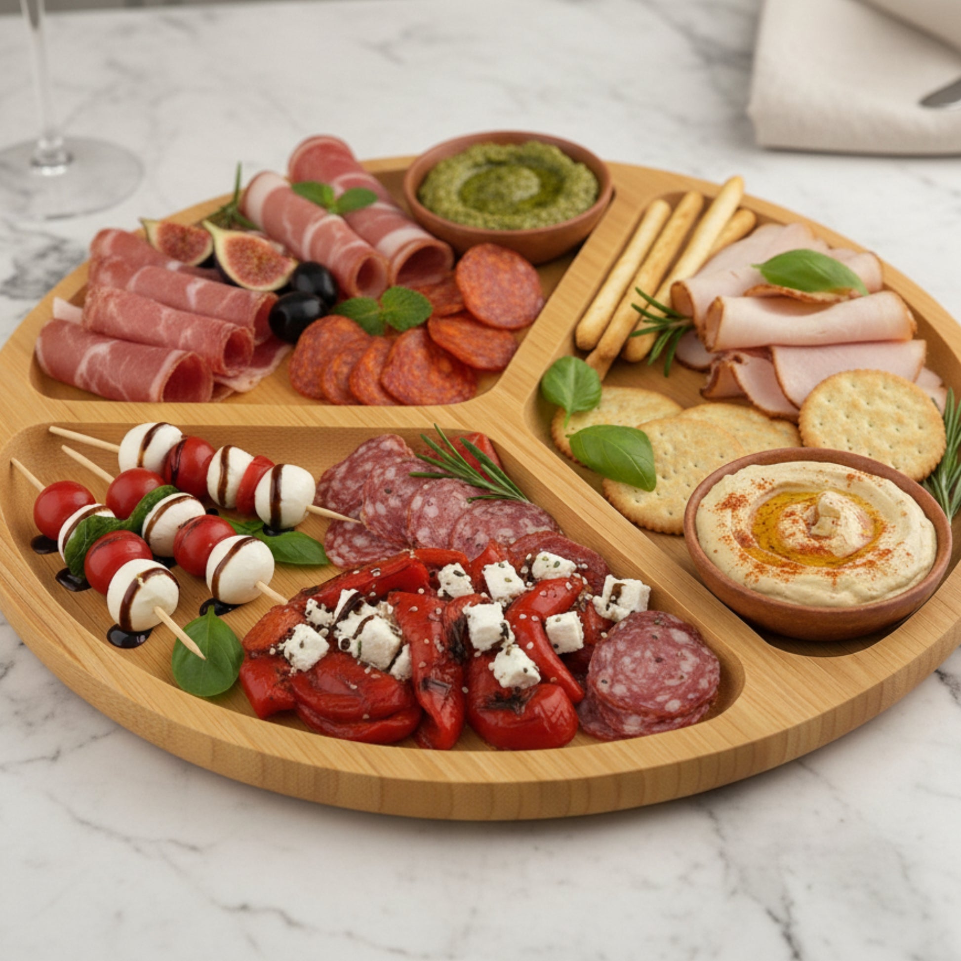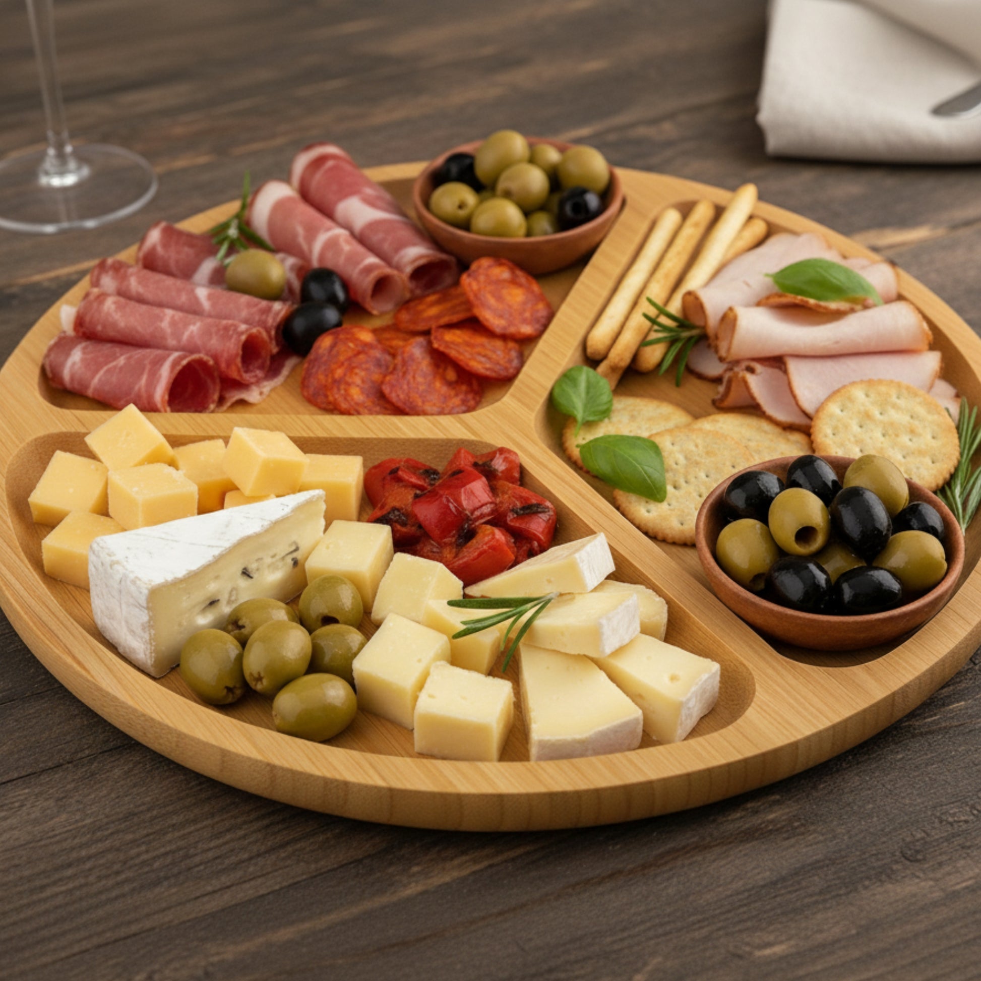 Tabla Para Picadas De Bamboo 3 Divisiones Fiambres